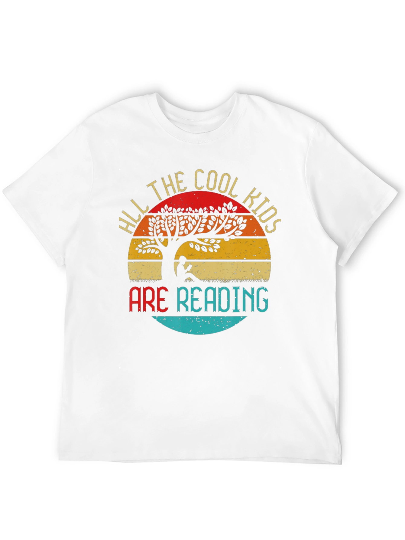 Luce tu amor por la lectura con esta camiseta negra de diseño llamativo. Presenta un motivo circular con un árbol estilizado, donde una persona lee bajo sus ramas. El texto "All The Cool Kids Are Reading" rodea la imagen, destacando la importancia de la lectura de una forma divertida y moderna. Los colores del diseño, rojo, naranja, amarillo y turquesa, le dan un toque vintage y atractivo. Perfecta para usar a diario, expresar tu personalidad y mostrar tu pasión por los libros. Ideal para estudiantes, bibliotecarios, profesores, o cualquier persona que ame leer. ¡Una prenda cómoda y con estilo que te hará destacar!