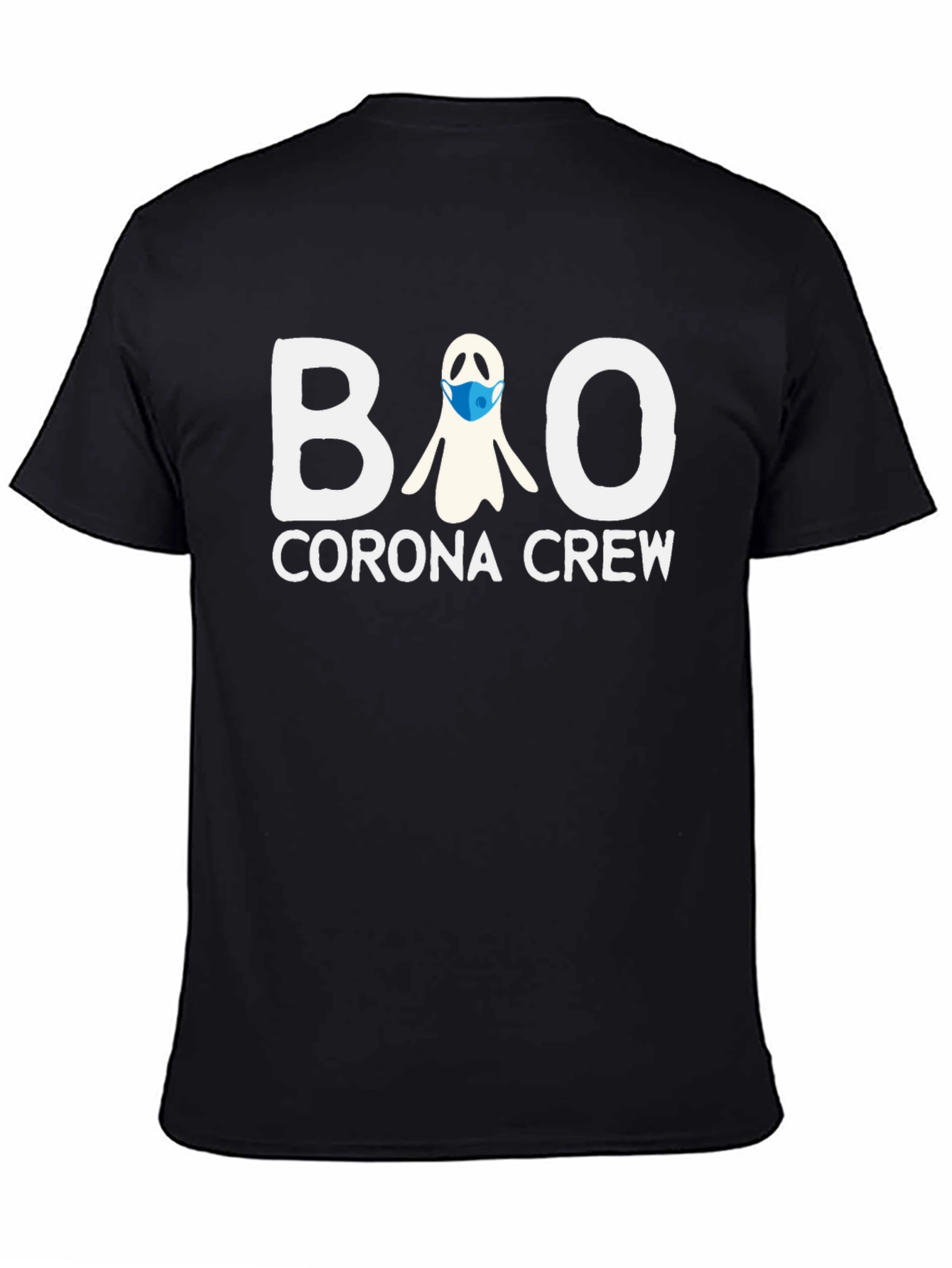 Esta camiseta negra de manga corta presenta un diseño divertido y relevante. Con el texto "BOO Corona Crew" en letras blancas llamativas, junto con un fantasma que lleva una mascarilla azul, esta prenda es perfecta para expresar un sentido del humor en tiempos desafiantes. Ideal para usar en Halloween, reuniones informales o simplemente para añadir un toque único a tu vestuario diario. Confeccionada con materiales cómodos y duraderos, esta camiseta es una opción excelente para aquellos que buscan estilo y conciencia social. ¡Muestra tu espíritu con esta camiseta original y atrevida!