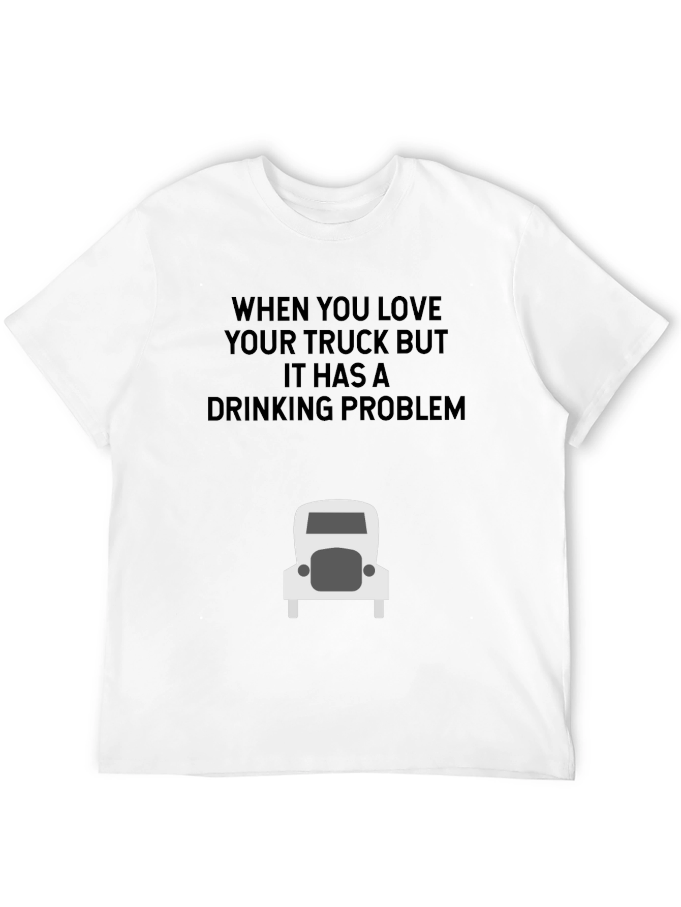 Luce esta divertida camiseta negra que seguro llamará la atención. Presenta un ingenioso diseño con la frase "WHEN YOU LOVE YOUR TRUCK BUT IT HAS A DRINKING PROBLEM" (Cuando amas tu camión pero tiene un problema con la bebida) y un dibujo estilizado de un camión antiguo. Perfecta para los amantes de los camiones con sentido del humor. Hecha con materiales suaves y cómodos, esta camiseta es ideal para uso diario, ya sea para salir con amigos, asistir a eventos de camiones o simplemente relajarte en casa. Su diseño único te permitirá expresar tu pasión por los camiones de una manera original y divertida. ¡Consigue la tuya y prepárate para las risas!