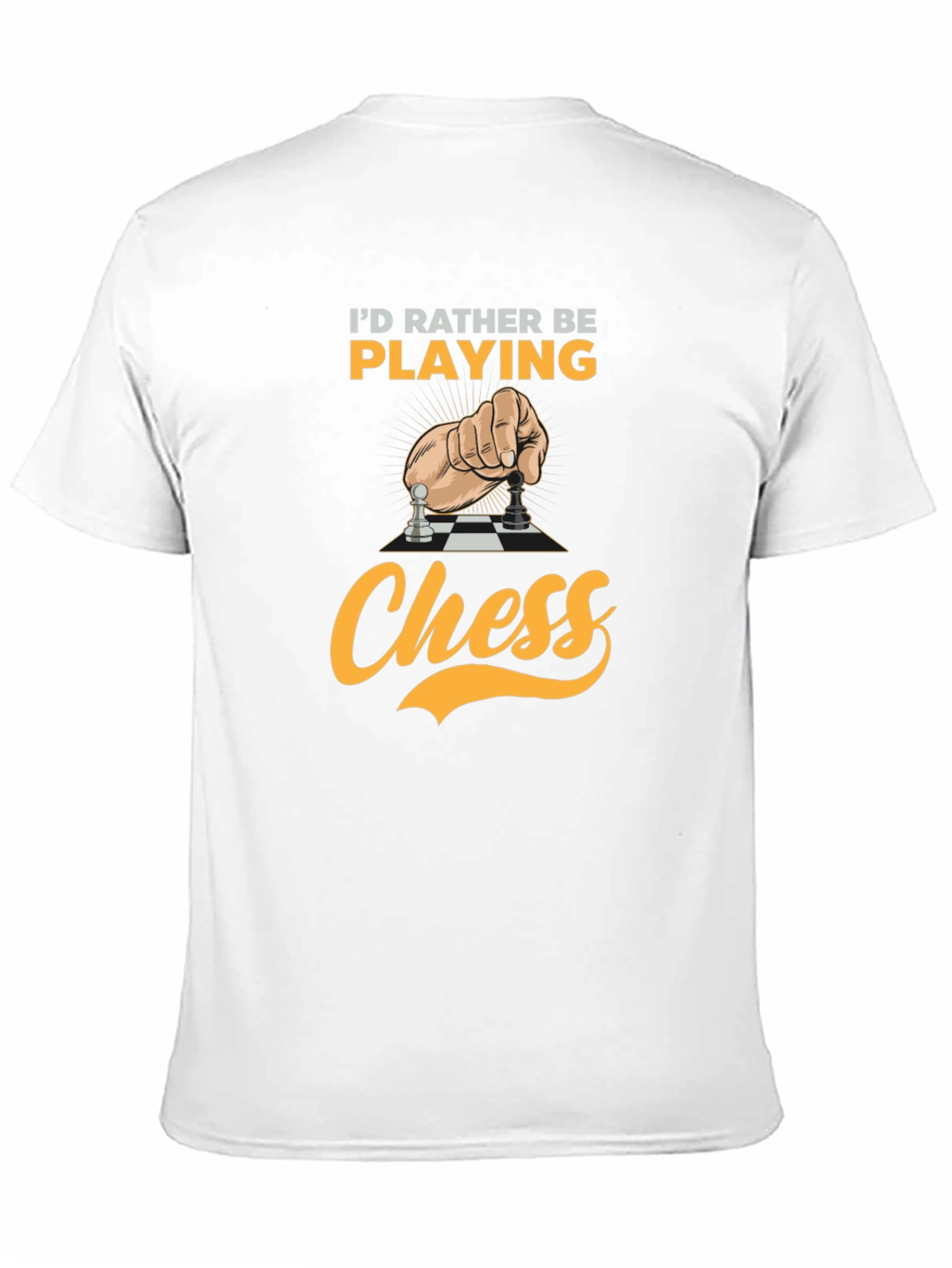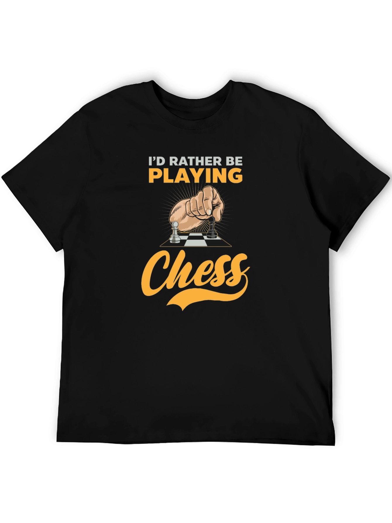 Luce tu pasión por el ajedrez con esta camiseta negra de corte clásico. Presenta un diseño llamativo con la frase "I'd Rather Be Playing Chess", junto con una ilustración de una mano moviendo una pieza sobre un tablero. Perfecta para llevar a tus partidas, eventos de ajedrez o simplemente para mostrar tu amor por este juego estratégico en tu día a día. Fabricada con un tejido suave y cómodo, esta camiseta es ideal para cualquier amante del ajedrez que quiera expresar su afición con estilo.