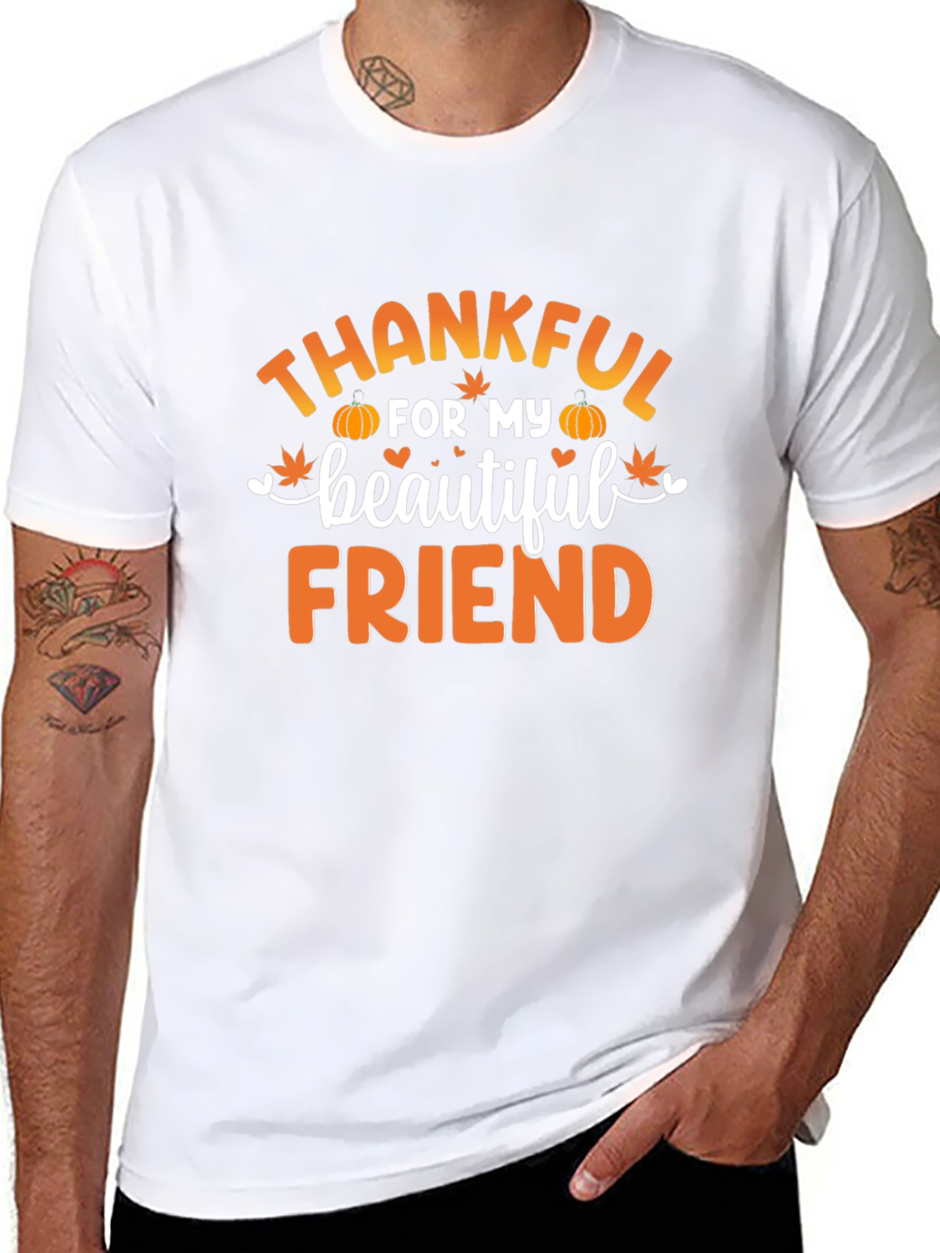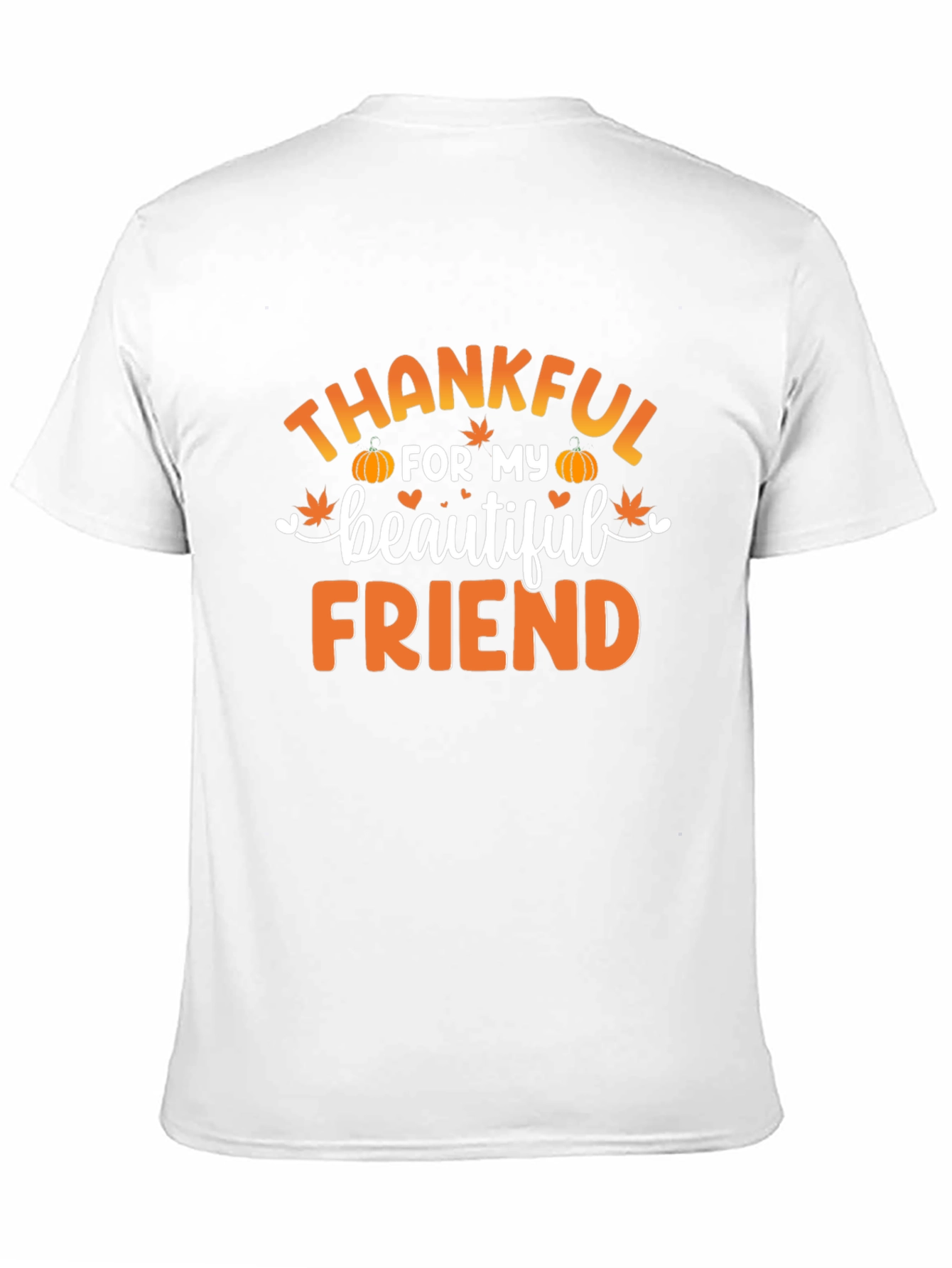 Luce esta elegante camiseta negra con un diseño especial. Presenta la frase "Agradecido por mi hermosa amiga" en letras color naranja, adornada con calabazas y hojas de arce, ideal para celebrar la amistad en la temporada de otoño. Confeccionada en un tejido suave y cómodo, esta camiseta de manga corta es perfecta para llevar en reuniones informales, fiestas de amigos o simplemente para expresar tu gratitud. Su estilo versátil la convierte en una excelente opción para combinar con jeans, pantalones casuales o faldas. Un regalo significativo para esa amiga especial en tu vida.