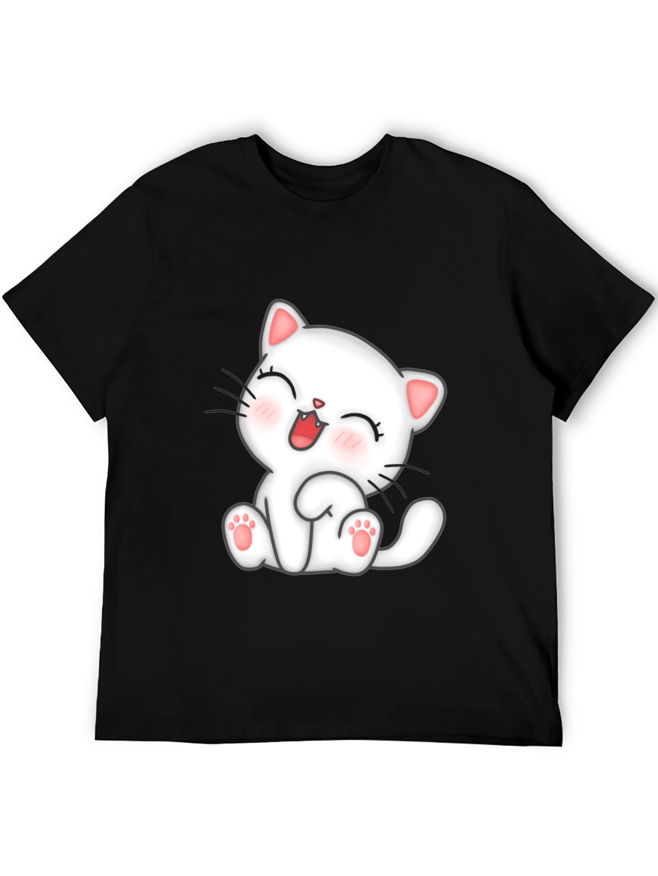 Luce un estilo adorable con esta camiseta negra de manga corta. Presenta un tierno diseño de un gatito blanco de estilo kawaii con detalles rosados en sus orejas y patas. Perfecta para los amantes de los gatos y el estilo dulce. Confeccionada con materiales suaves y cómodos, esta camiseta es ideal para usar en el día a día, ya sea para un paseo casual o para relajarte en casa. Destaca con este diseño único y expresa tu amor por los felinos con mucho estilo. Un regalo perfecto para cualquier ocasión. ¡Adquiere la tuya hoy mismo!