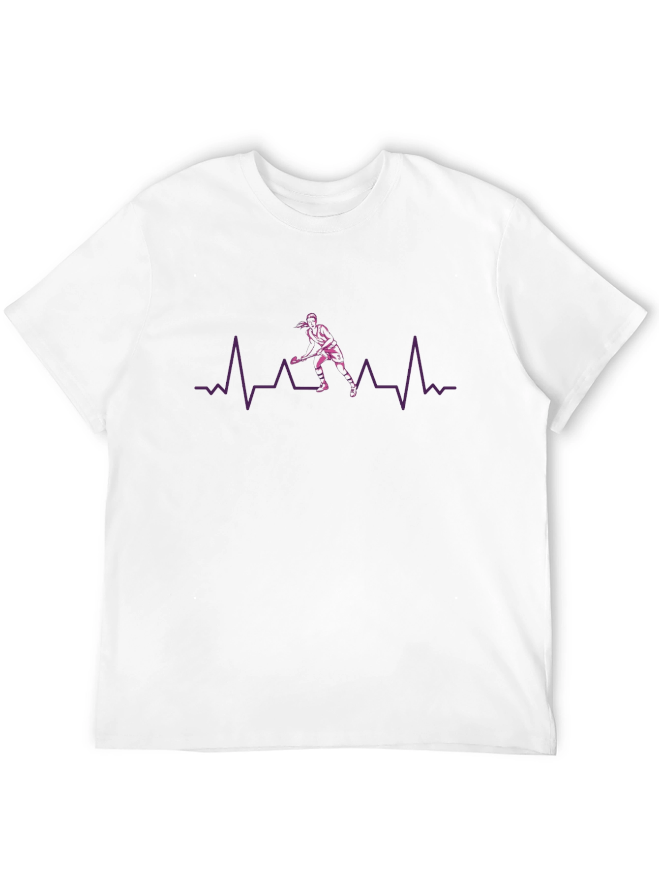 Esta camiseta negra de manga corta presenta un diseño único y llamativo. Un gráfico de latido de corazón en color morado recorre el pecho, integrando la silueta de un jugador de hockey o lacrosse. Perfecta para los amantes de estos deportes, esta camiseta ofrece un estilo moderno y distintivo. Su tejido suave y cómodo la hace ideal para el uso diario, ya sea para practicar deportes, relajarse en casa o salir con amigos. Demuestra tu pasión por el juego con esta prenda que combina moda y deporte.