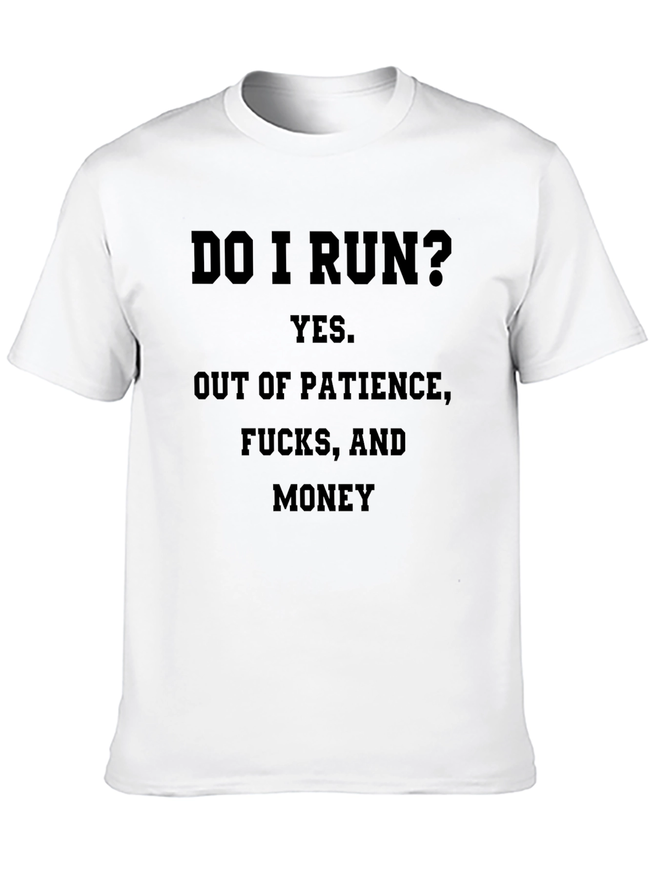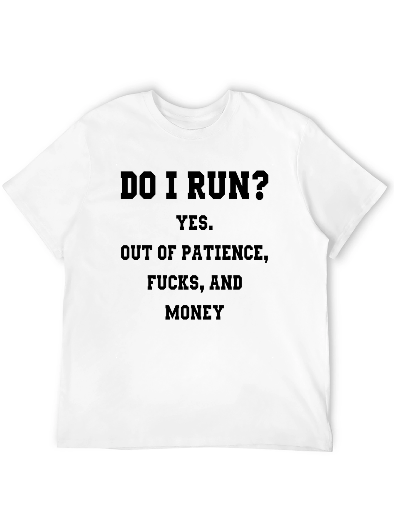 Esta camiseta negra de corte clásico presenta un estampado audaz y humorístico. La frase "DO I RUN? YES. OUT OF PATIENCE, FUCKS, AND MONEY" está impresa en mayúsculas, creando un diseño llamativo y provocador. Perfecta para aquellos con un sentido del humor ácido y un estilo relajado. El material parece ser de algodón suave, ideal para el uso diario. Combina esta camiseta con tus jeans favoritos para un look casual, o úsala para expresar tu personalidad en eventos informales. Una prenda imprescindible para quienes buscan destacar con un toque de originalidad y desenfado. Esta camiseta es sin duda una declaración de intenciones.
