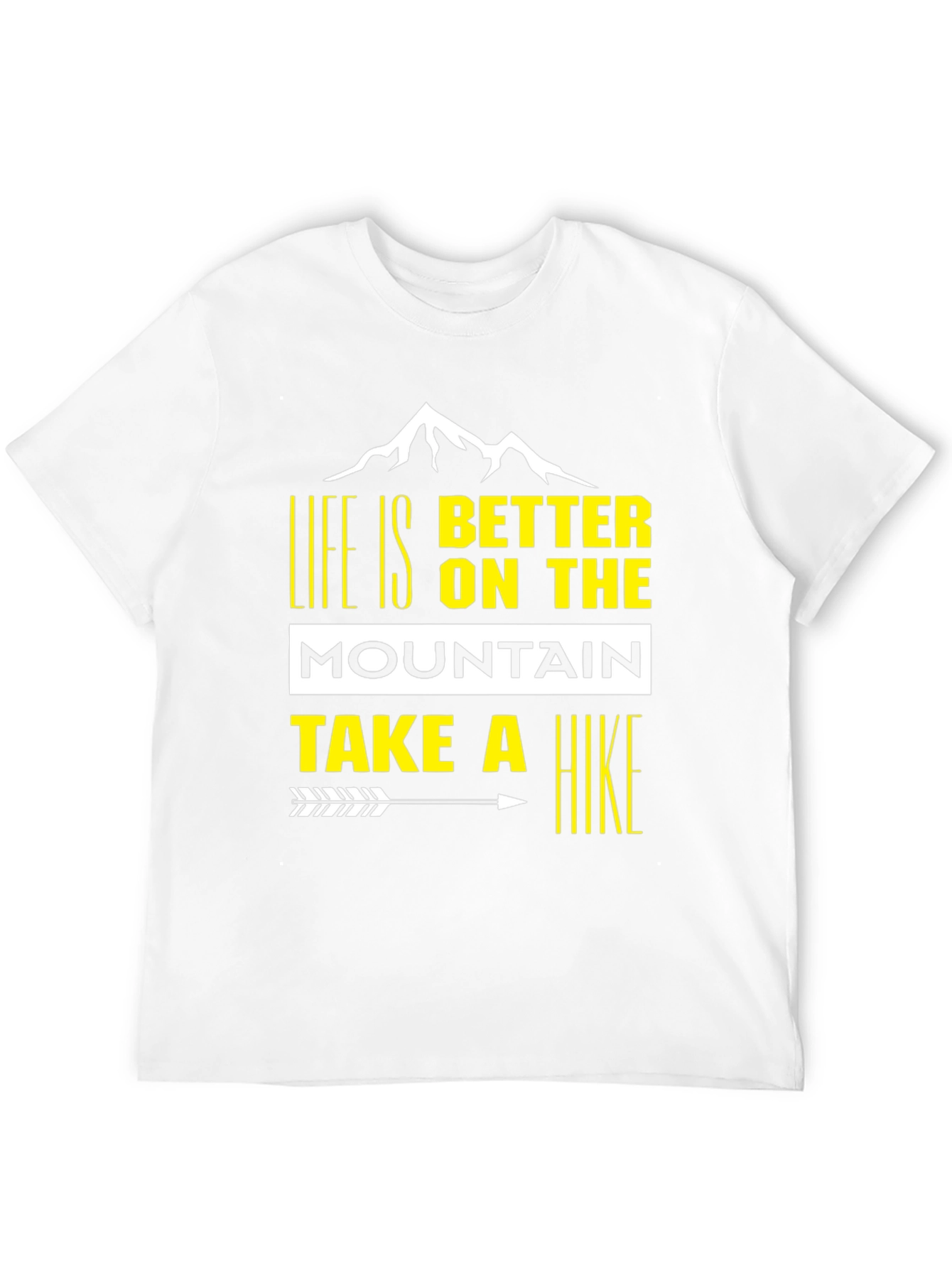Descubre nuestra camiseta negra de manga corta, ideal para los amantes de la naturaleza y la aventura. Con un diseño llamativo que presenta un gráfico de montaña y el inspirador lema "Life is better on the mountain. Take a hike", esta camiseta es perfecta para expresar tu pasión por el senderismo y el aire libre. El estampado en tonos amarillos y blancos resalta sobre el fondo negro, creando un contraste visual atractivo. Fabricada con materiales suaves y cómodos, esta camiseta es ideal para usar durante tus excursiones o simplemente para un look casual con un toque aventurero. ¡Prepárate para conquistar nuevas cumbres con estilo!