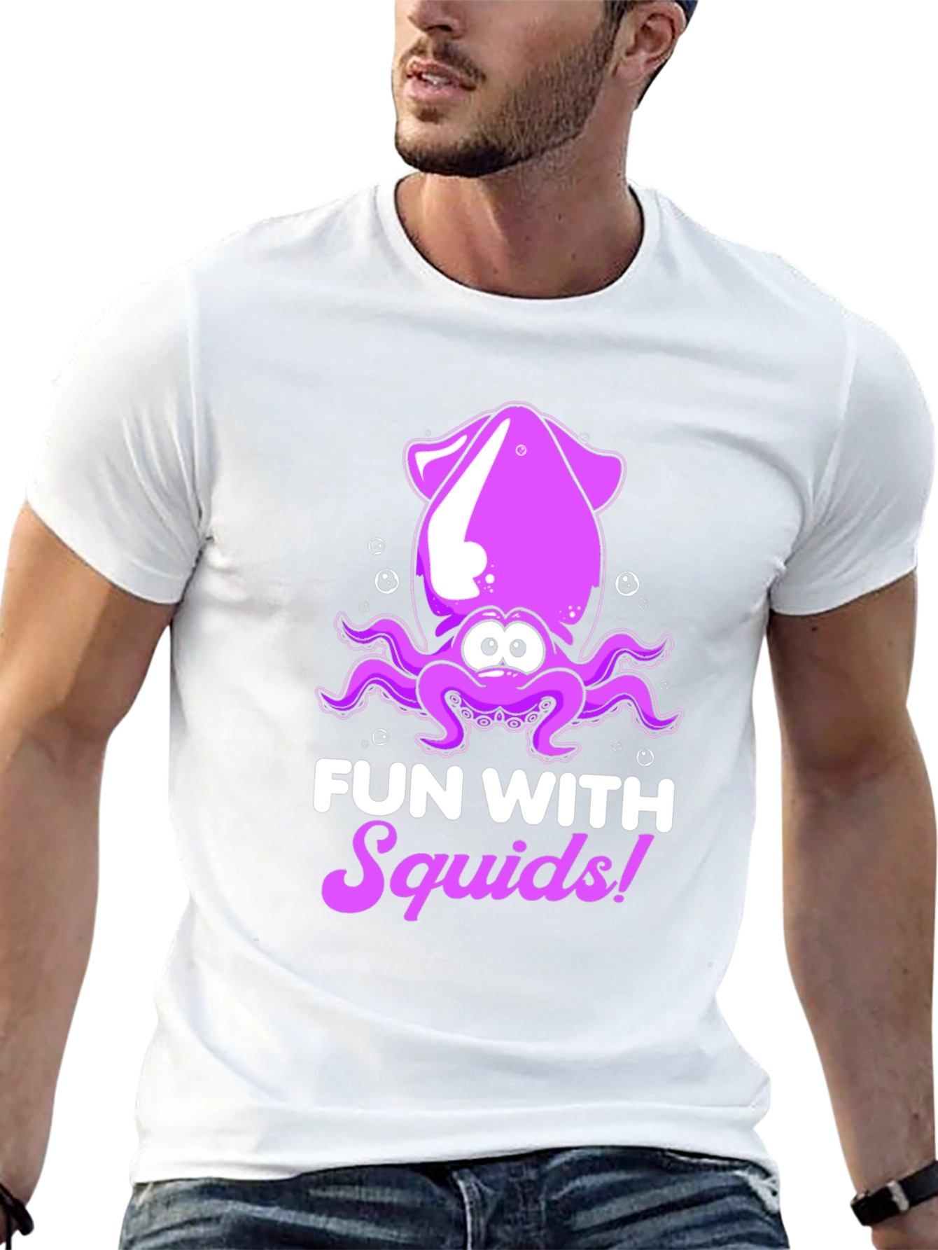 ¡Sumérgete en la diversión con esta camiseta negra única! Presenta un llamativo diseño de calamar morado de estilo caricaturesco, rodeado de burbujas y acompañado del texto "Fun With Squids!". Perfecta para los amantes de la vida marina y aquellos que buscan un toque original en su vestuario. Fabricada en un material suave y cómodo, esta camiseta es ideal para llevar a diario, ya sea para salir con amigos, ir al gimnasio o simplemente relajarse en casa. ¡Destaca con esta prenda que seguramente generará conversación y mostrará tu lado más divertido!