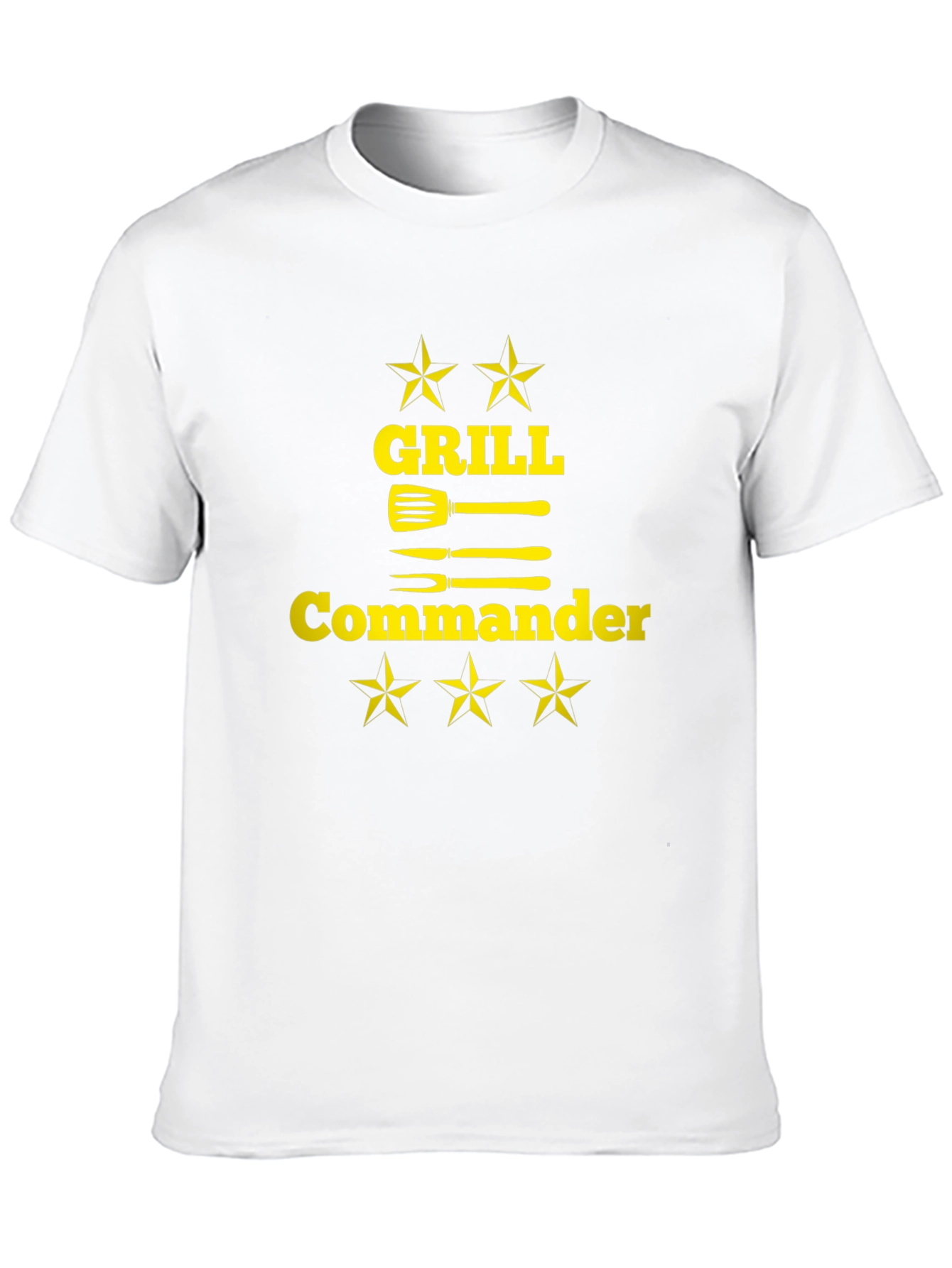 ¡Domina la parrilla con estilo! Esta camiseta negra de manga corta presenta un llamativo diseño amarillo con las palabras "Grill Commander" entre estrellas y utensilios de barbacoa. Perfecta para los amantes de las parrilladas, esta camiseta es ideal para llevar en tus reuniones familiares, fiestas al aire libre o simplemente para lucir un look divertido y original. Confeccionada con materiales de alta calidad, ofrece comodidad y durabilidad. Demuestra tu pasión por la barbacoa con esta prenda única y conviértete en el rey de la parrilla. ¡Un regalo perfecto para los maestros asadores!