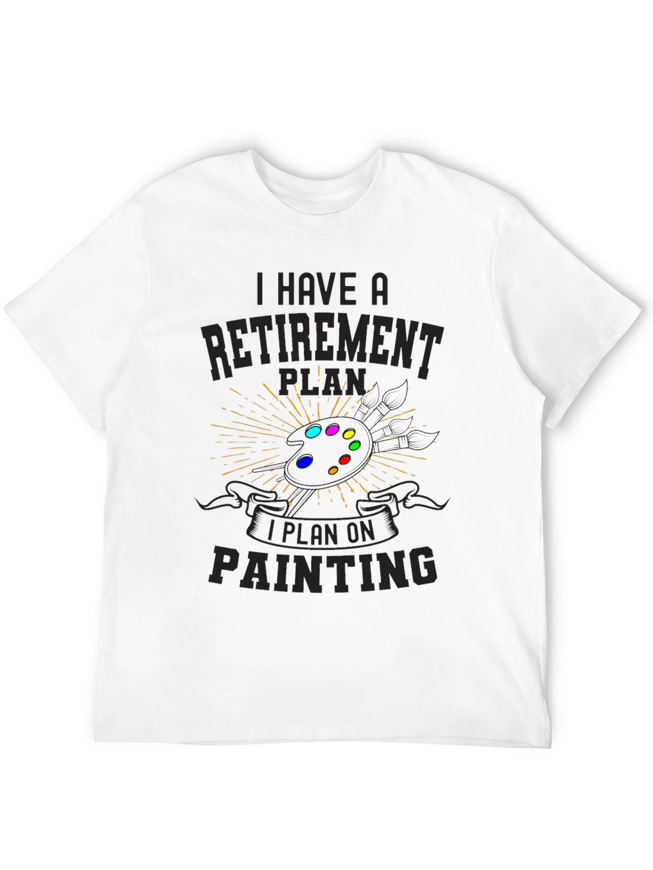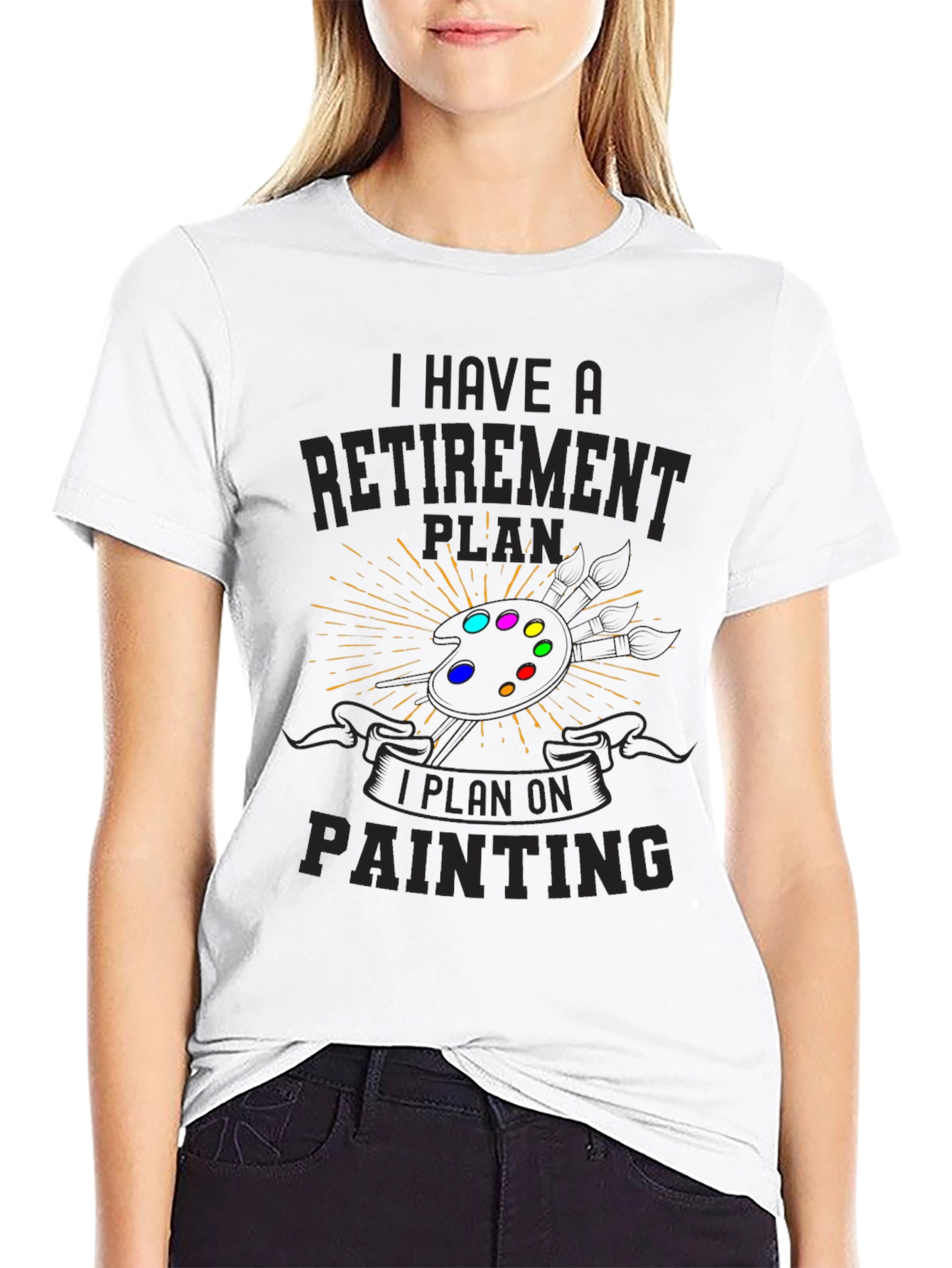 Luce esta camiseta negra de algodón con un diseño único. Presenta la frase "I HAVE A RETIREMENT PLAN. I PLAN ON PAINTING" (Tengo un plan de jubilación. Planeo pintar), perfecta para los amantes del arte y la pintura que buscan un estilo relajado y con personalidad. El diseño incluye una paleta de colores vibrantes que destaca sobre el fondo negro, creando un contraste llamativo. Ideal para llevar en tus clases de pintura, salidas casuales o simplemente para expresar tu pasión por el arte. Una prenda cómoda y original que seguro atraerá miradas y conversaciones.