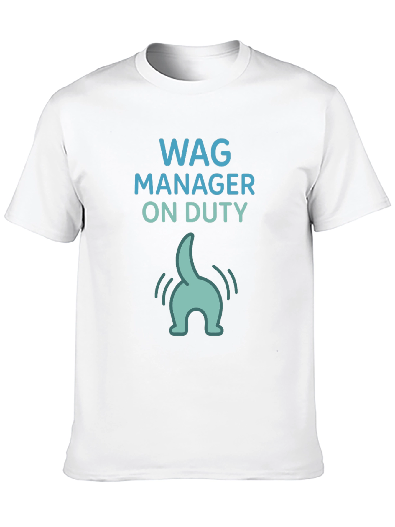 Muestra tu amor por los perros con esta divertida camiseta negra. Presenta un diseño único con la frase "Wag Manager On Duty" y una ilustración adorable de la parte trasera de un perro moviendo la cola. Perfecta para los amantes de los animales y dueños de mascotas orgullosos. El diseño en color azul crea un contraste llamativo en la tela negra, lo que la convierte en una prenda destacada en cualquier guardarropa casual. Ideal para usar en paseos con tu perro, reuniones informales o simplemente para expresar tu personalidad amante de los animales. Esta camiseta es una excelente opción para regalar a cualquier persona que ame a los perros.